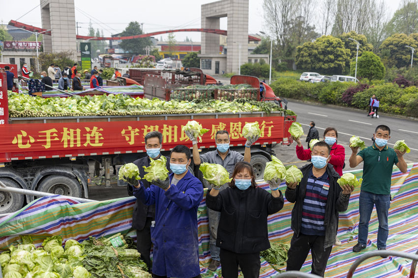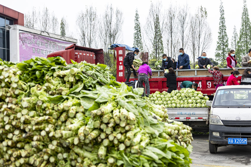 散發(fā)著清香氣息的萵筍,品質(zhì)一流的蓮花白、土豆、生菜、蘿卜,還有都江堰特產(chǎn)大蔥以及時下當(dāng)?shù)刈钚迈r的春筍等,經(jīng)過嚴(yán)格的農(nóng)產(chǎn)品安全檢測后,被裝上了愛心運(yùn)輸車輛。