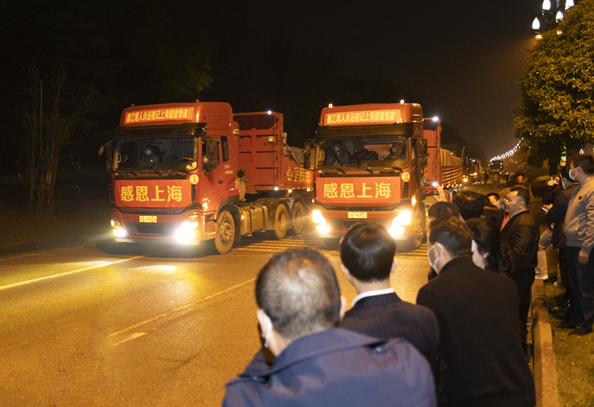 人民網(wǎng)成都3月29日電 (彭茜)這幾日,上海疫情牽動人心。3月28日晚,10臺滿載著120余噸新鮮時蔬的貨運(yùn)車輛,從四川都江堰集結(jié)出發(fā)開往上海,向上海市民帶去都江堰的暖心問候和祝福。