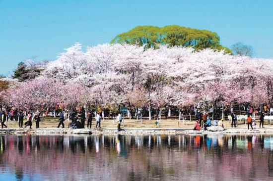 玉淵潭公園早櫻綻放,燦若云霞,蔚為壯觀。