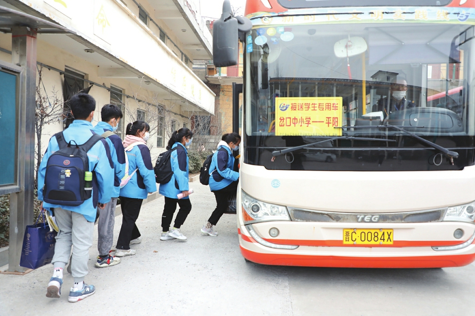 2013年,陽(yáng)泉市平定縣實(shí)行交通惠民“暖心工程”,開(kāi)通了免費(fèi)接送寄宿制學(xué)生專用車(chē),每周五下午到校接送學(xué)生回家,周一早晨再接送他們安全返校。截至目前,平定公交公司共開(kāi)通接送寄宿生專線72條,投入運(yùn)營(yíng)車(chē)輛95臺(tái),覆蓋全縣10個(gè)鄉(xiāng)(鎮(zhèn))的202個(gè)村莊、31所學(xué)校、2600余名寄宿制學(xué)生。圖為近日,該縣岔口中學(xué)操場(chǎng)上,分散居住在十里八鄉(xiāng)的寄宿制學(xué)生正準(zhǔn)備乘車(chē)回家。(張春林?jǐn)z)
