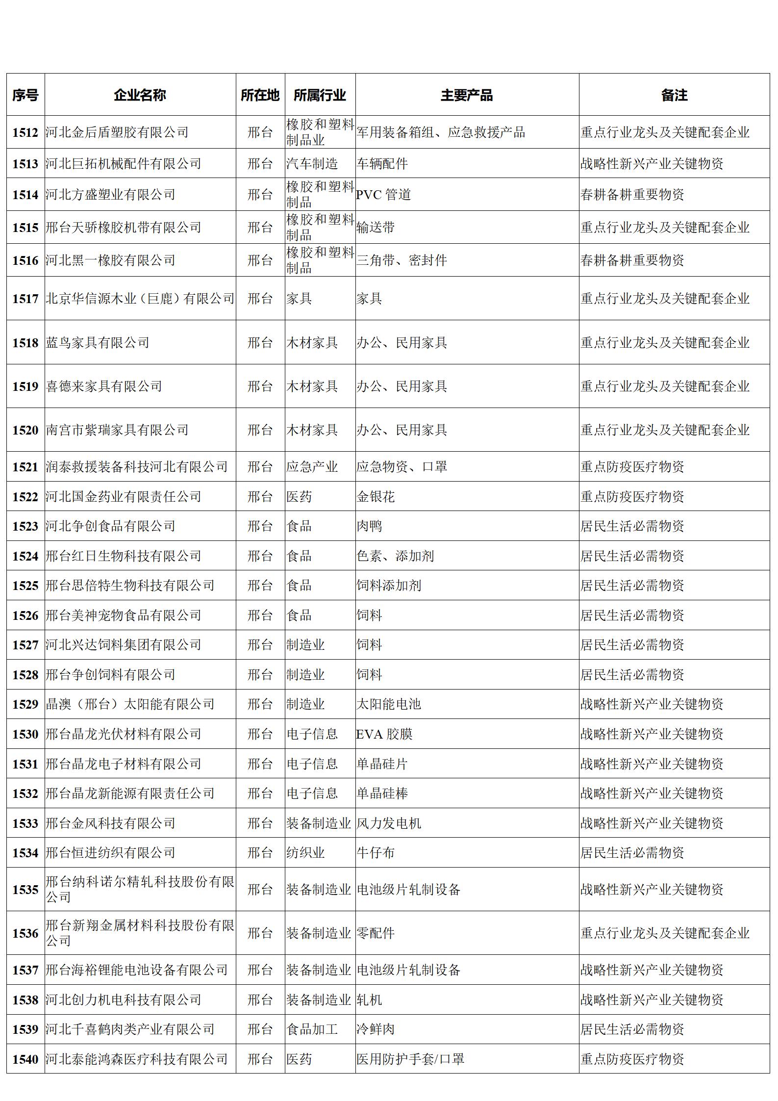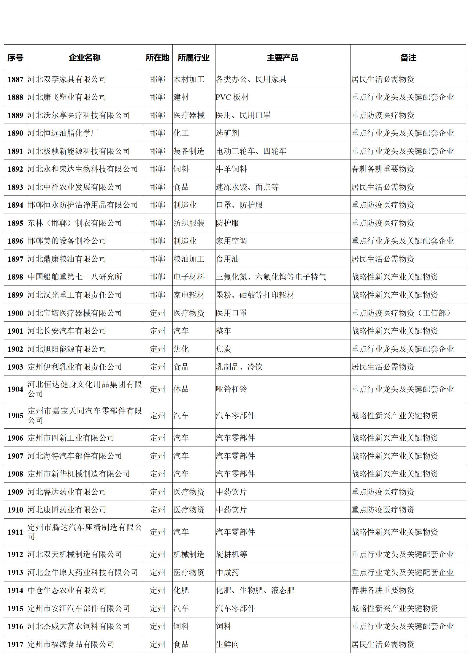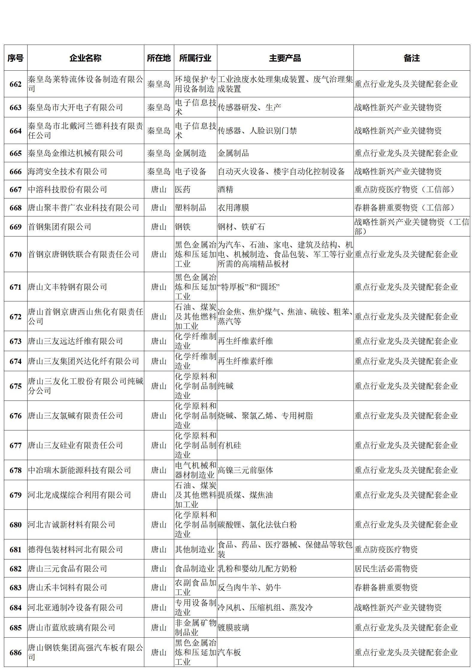 河北省重點產(chǎn)業(yè)鏈供應(yīng)鏈“白名單”企業(yè)