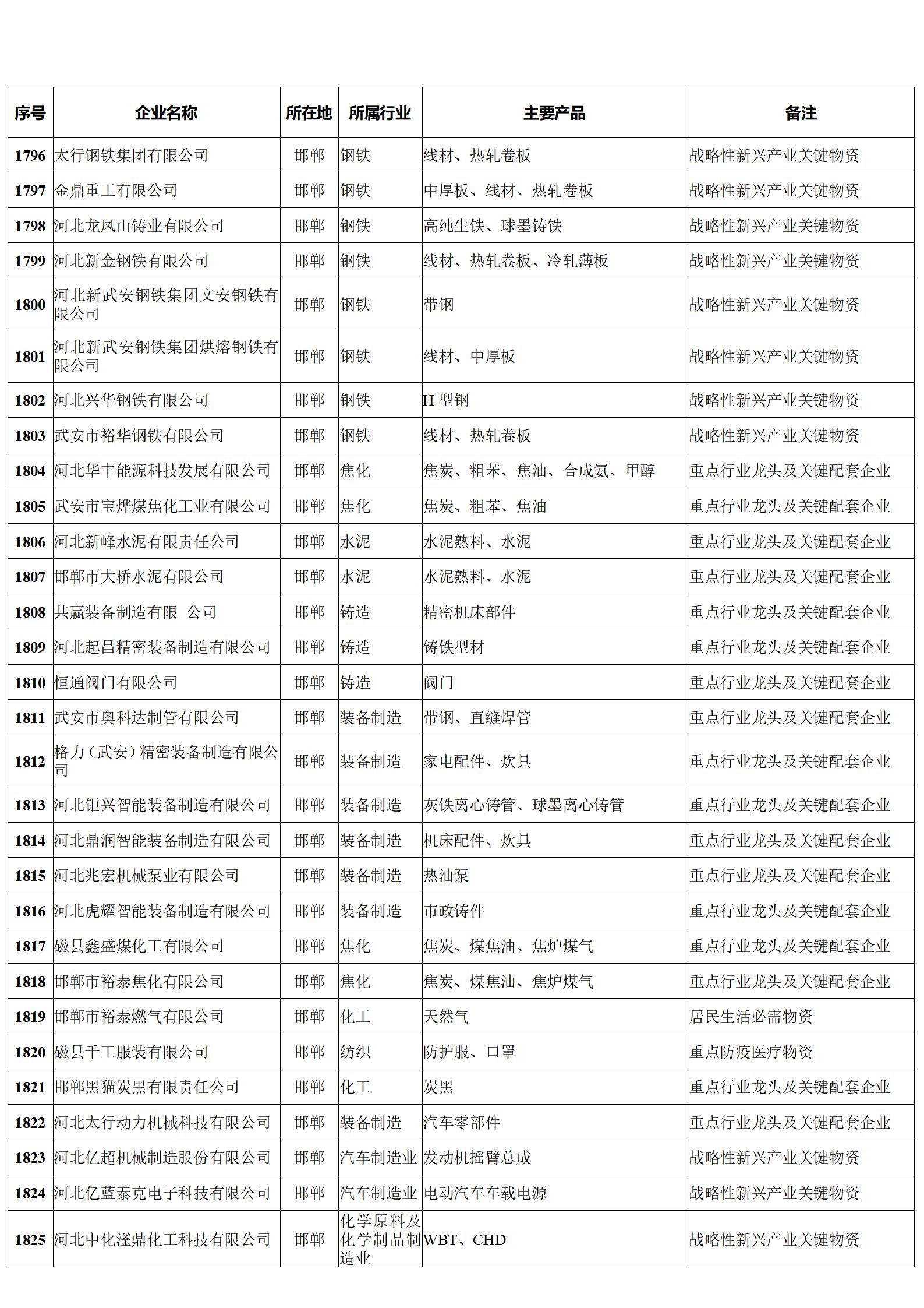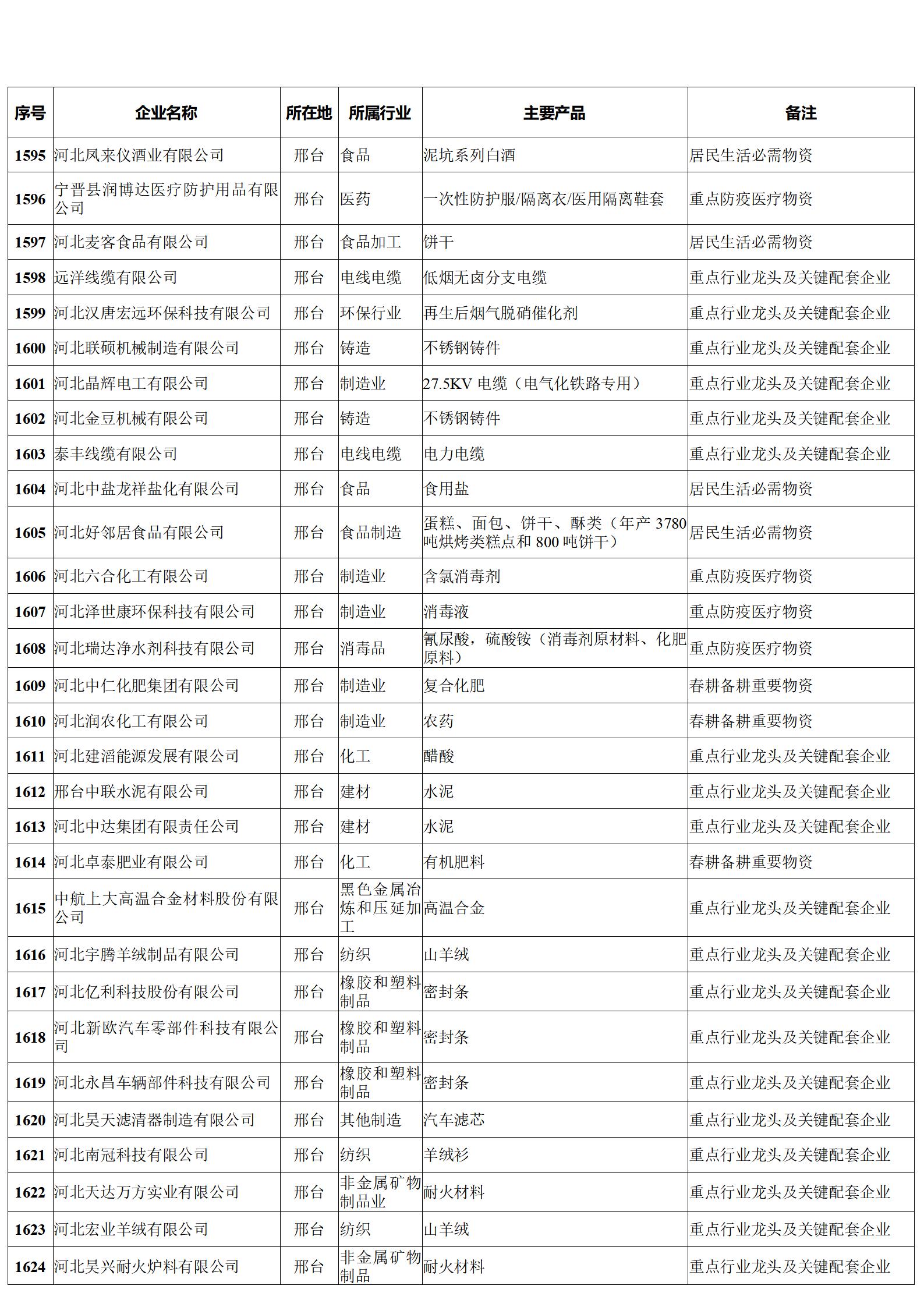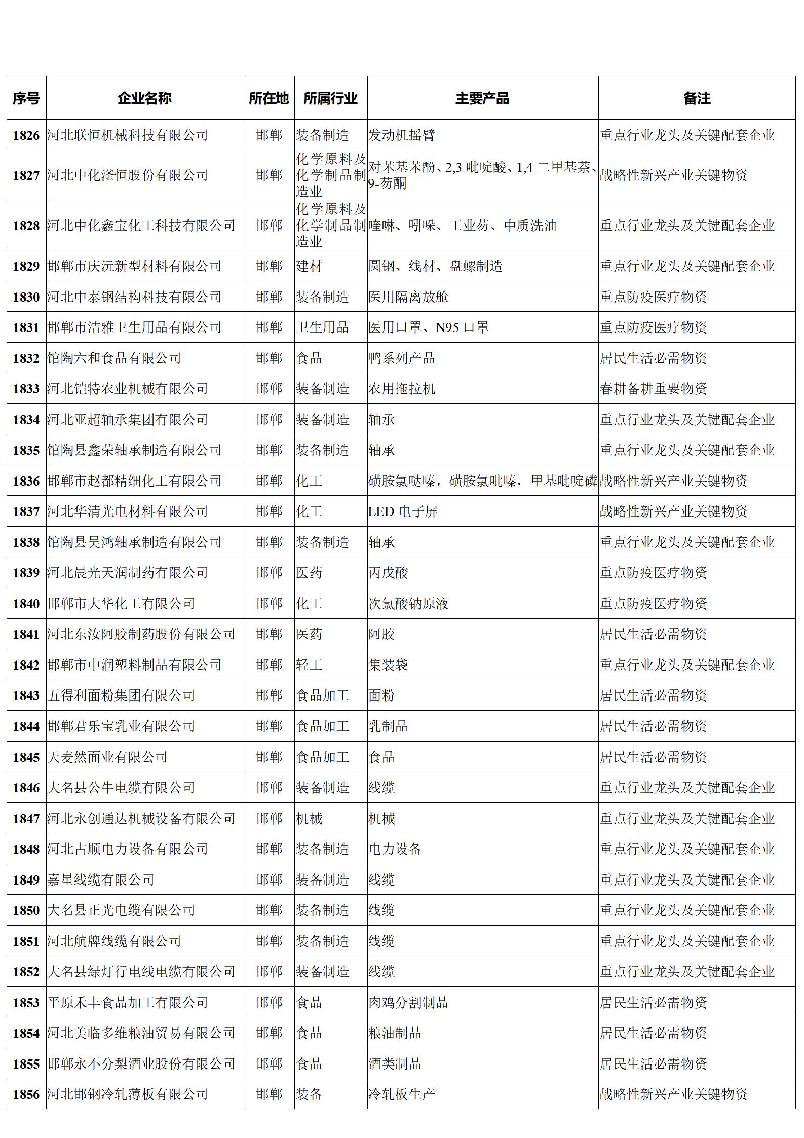 河北省重點產(chǎn)業(yè)鏈供應(yīng)鏈“白名單”企業(yè)