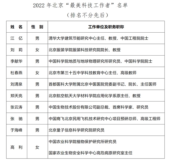 2022年北京“最美科技工作者”揭曉