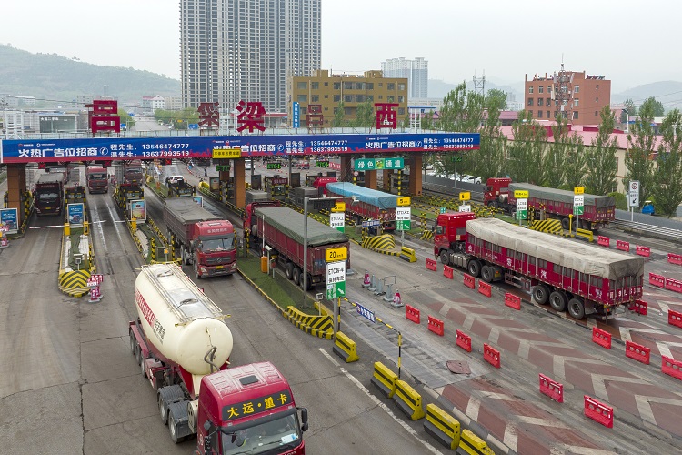 呂梁西高速口,貨運(yùn)車(chē)輛正在快速通行。劉亮亮 攝