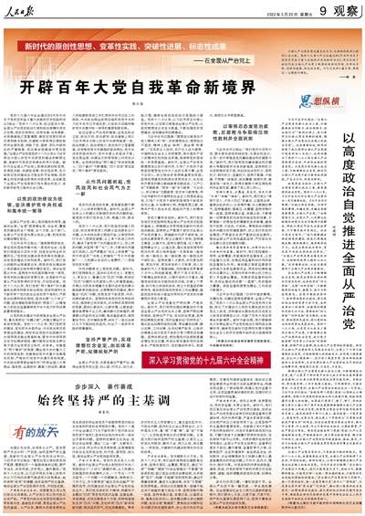 全面從嚴治黨是黨永葆生機活力、走好新的趕考之路的必由之路。黨的十九屆六中全會通過的《中共中央關于黨的百年奮斗重大成就和歷史經(jīng)驗的決議》,深刻總結(jié)了新時代在全面從嚴治黨上取得的原創(chuàng)性思想、變革性實踐、突破性進展、標志性成果。今天刊發(fā)的3篇文章,圍繞這一主題進行闡述。