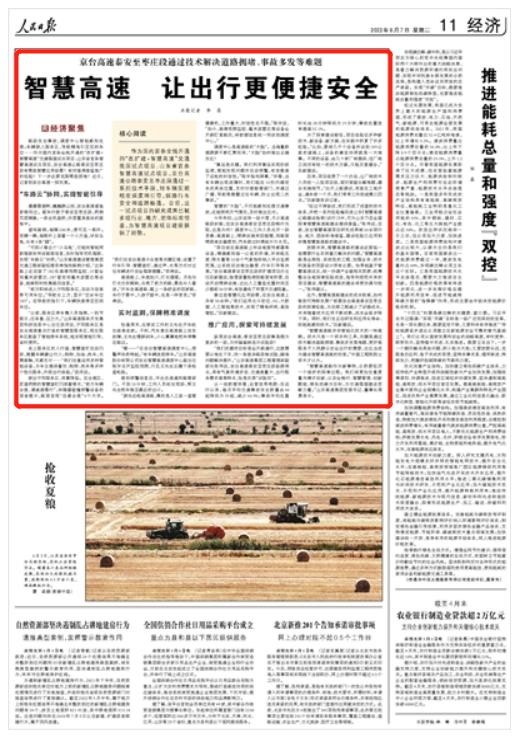 人民日報點(diǎn)贊山東高速:“智慧高速”讓出行更便捷安全