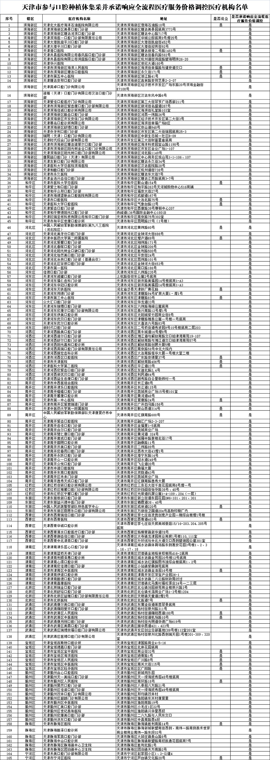 附件:天津市參與口腔種植體集采并承諾響應(yīng)全流程醫(yī)療服務(wù)價格調(diào)控醫(yī)療機構(gòu)名單