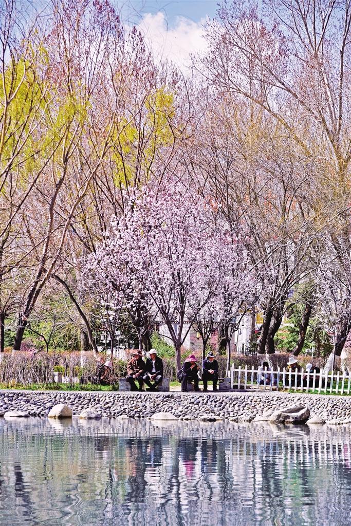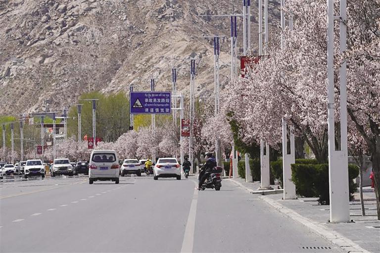 那么,去哪里查收這份“春日限定大禮包”呢?最近幾天,記者的朋友圈都被帕崩崗的美景霸屏了,一波又一波的朋友到這里打卡。除了去帕崩崗賞桃花,更不容錯(cuò)過(guò)的一定是拉薩大街小巷以及公園中驚鴻一瞥的美景。宗角祿康公園植被繁茂、古樹較多,一到春季,玫粉色的榆葉梅綻放枝頭,層層花瓣在陽(yáng)光的照耀下嬌俏動(dòng)人,一樹粉色花朵倒映在幽綠的湖水中,盡顯詩(shī)意。此外,緊鄰羅布林卡的羅堆東路也有意想不到的美景,每到這個(gè)季節(jié),紅葉李便會(huì)沿路盛開,淡粉色的花瓣搭配深紅色的花蕊,甚是好看。金珠西路沿途的景色也令人耳目一新,淡粉色的花朵肆意綻放,等紅燈時(shí)的心情因這些花朵變得不再焦灼。