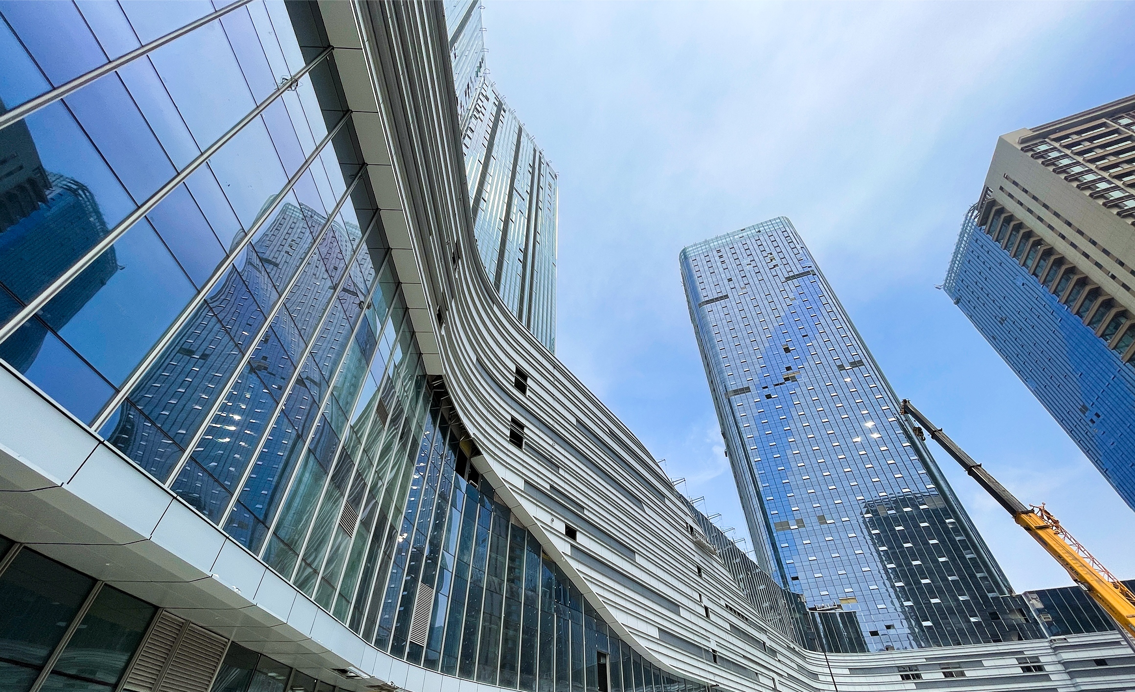 “去年,工地樓座外部裝飾施工遇到了大型機械進場困難的問題,幕墻施工曾按下‘暫停鍵’?!鄙轿鹘ㄍ丁は闈穱H項目區(qū)域責(zé)任人韓勇回憶,問題涉及市政、園林和多個居民小區(qū),遇到困難后,他們及時向包保領(lǐng)導(dǎo)反饋,包保領(lǐng)導(dǎo)動員各方力量協(xié)調(diào)、創(chuàng)新工作方法,最終保障了工程進度。