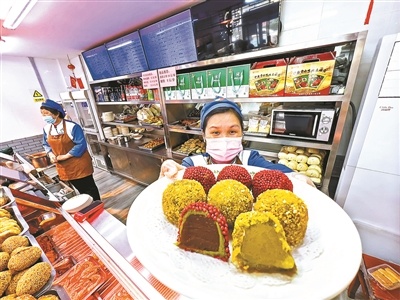 此外,護(hù)國寺小吃廣外店、二七劇場店、亦莊店、紅蓮店今年首次創(chuàng)新推出了櫻花版艾窩窩,淡淡的粉色煞是惹人喜愛,“我們用紅菜頭熬水蒸糯米,再包入日常的餡料,一經(jīng)推出,吸引了很多年輕消費者購買?!毕嚓P(guān)負(fù)責(zé)人張羽經(jīng)理表示,櫻花版艾窩窩將供應(yīng)到4月中旬,滿足市民踏青時外帶需求。