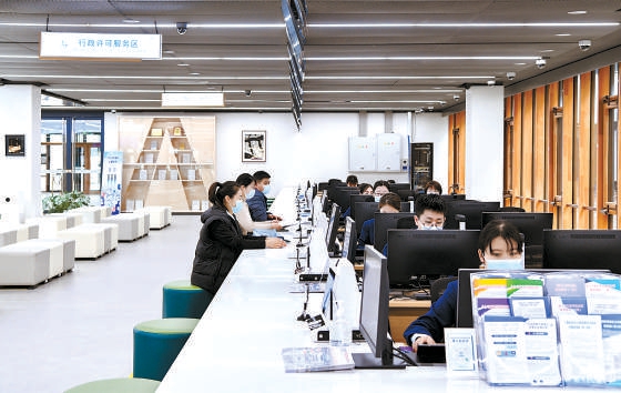 雄安新區(qū)政務(wù)服務(wù)中心大廳行政許可服務(wù)區(qū)。