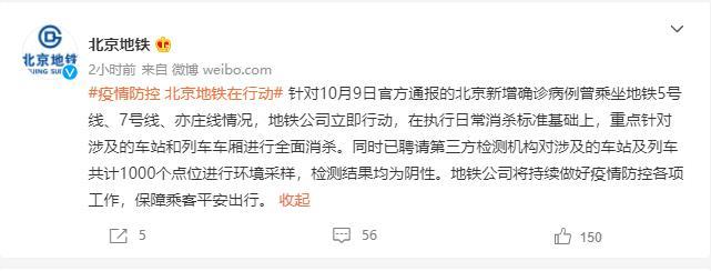 北京地鐵:確診病例軌跡所涉點(diǎn)位檢測結(jié)果均為陰性