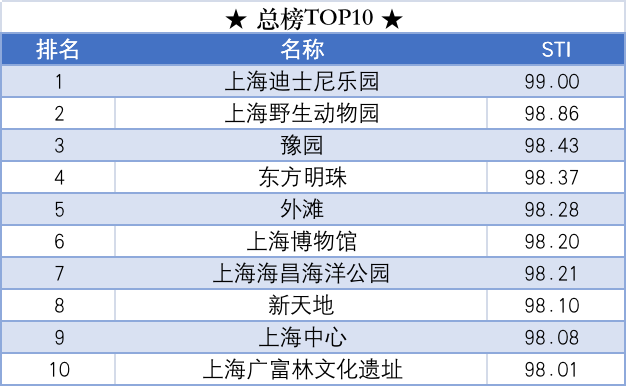 “最上海”旅游指數(shù):景區(qū)、文博等TOP10花落誰家?