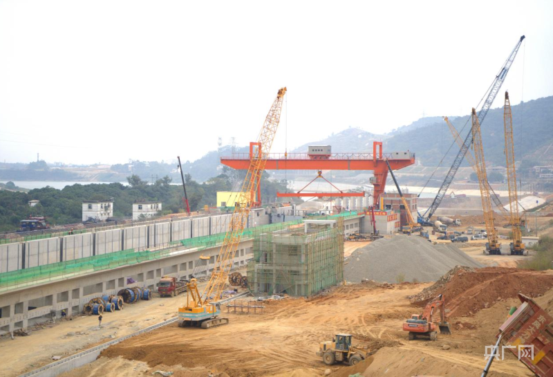 西津水利樞紐二線船閘工程建設正緊鑼密鼓進行中(央廣網發(fā) 蔡俊聰 攝)