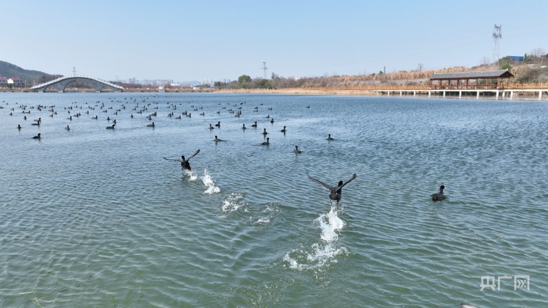 江西分宜:數百只白骨頂雞“做客”濕地公園