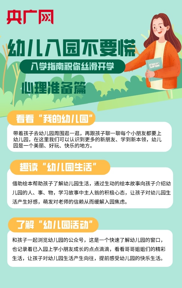 央廣網(wǎng)北京8月27日消息 幼兒園是人生的第一所學(xué)校,在這里,孩子們將開啟真正的學(xué)習(xí)生活和社會(huì)生活??梢哉f(shuō),這一階段對(duì)于孩子的性格塑造和習(xí)慣養(yǎng)成都有著十分重要的影響。那么幼兒入園前,新手爸媽應(yīng)該做好哪些準(zhǔn)備工作呢?別慌,這份入學(xué)指南請(qǐng)收藏!