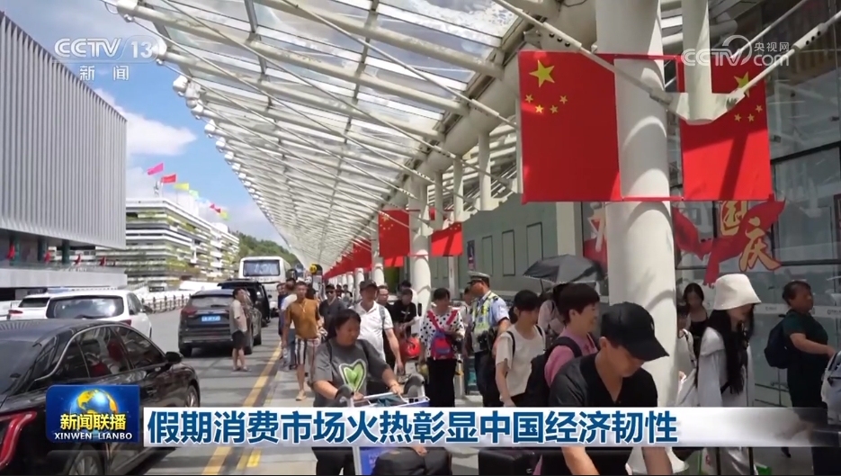 央視網(wǎng)消息(新聞聯(lián)播):中秋國慶假期,強(qiáng)勁需求和優(yōu)質(zhì)供給雙向發(fā)力,城鄉(xiāng)市場人氣旺盛、活力澎湃,有力釋放多層次多樣化消費(fèi)需求,彰顯出中國經(jīng)濟(jì)的強(qiáng)大韌性。