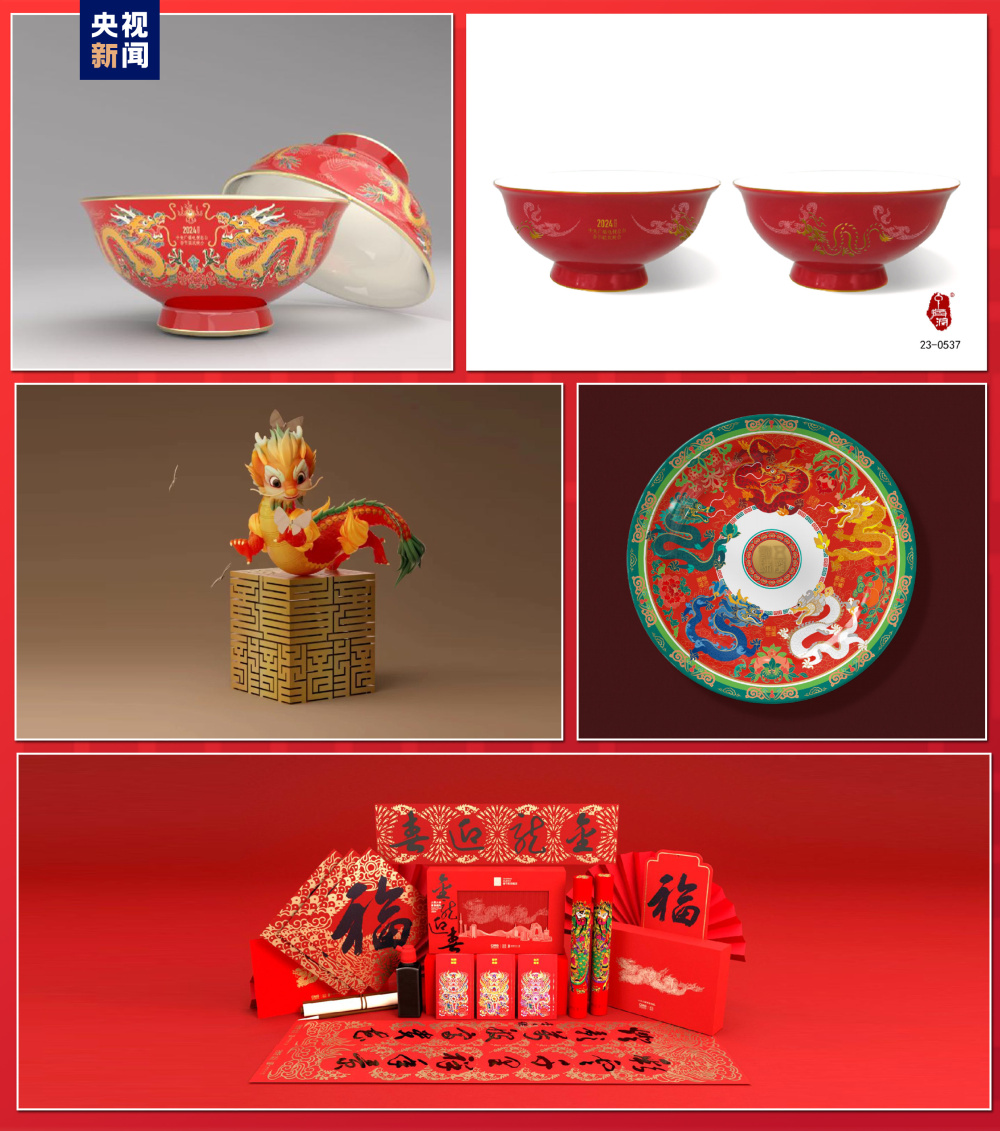 活動(dòng)儀式上同步發(fā)布的總臺(tái)文創(chuàng)“龘龘春碗”,是中央廣播電視總臺(tái)《2024年春節(jié)聯(lián)歡晚會(huì)》在甲辰龍年來臨之際專屬發(fā)行的生肖福禮,分為藝術(shù)珍藏版和雙龍典藏版。