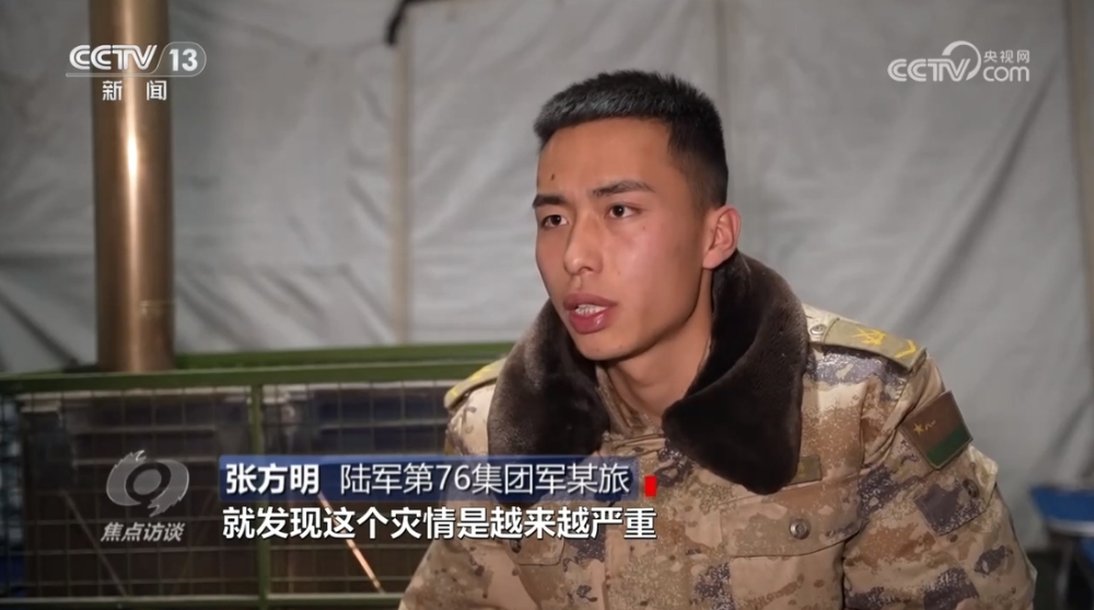 張方明:“一直走到大河家鎮(zhèn),發(fā)現(xiàn)災(zāi)情越來越嚴(yán)重,就打電話說我回來了,我爸第一時(shí)間跟我說:“你先不要回去了,這邊搬物資啥的,鄉(xiāng)政府都比較忙,你是當(dāng)兵的,你要來這邊幫忙,你要肩負(fù)起這份責(zé)任?!薄?/p>