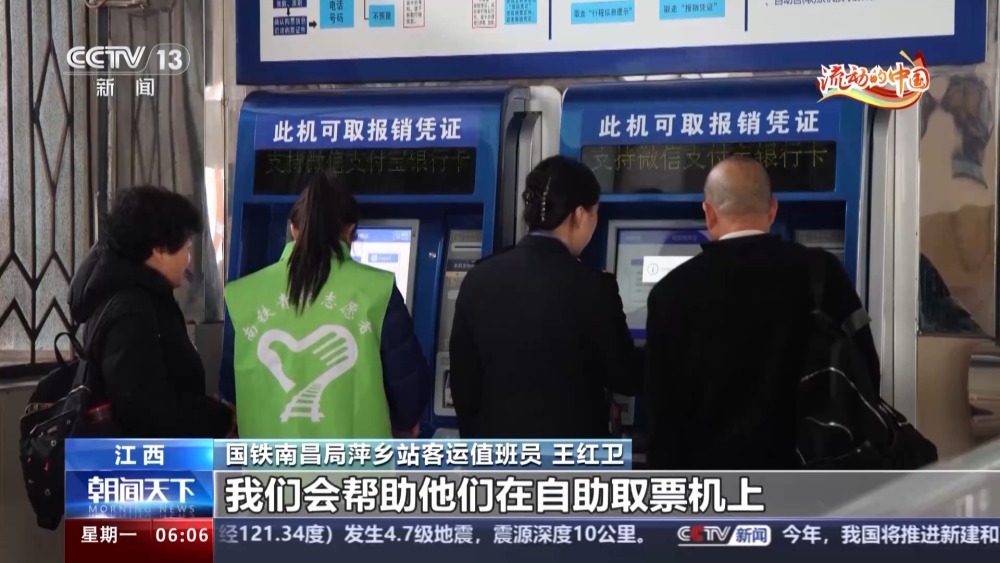 國(guó)鐵南昌局萍鄉(xiāng)站客運(yùn)值班員 王紅衛(wèi):最近,我們也遇到很多老年旅客,我們會(huì)幫助他們?cè)谧灾∑睓C(jī)上打印一張行程信息提示單,行程信息提示單在所乘車次下方會(huì)顯示詳細(xì)的檢票口和座位號(hào),方便旅客乘車。