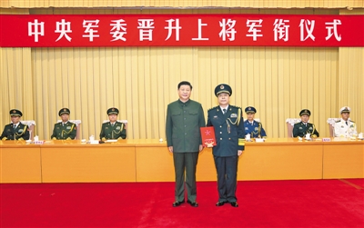 7月29日,中央軍委晉升上將軍銜儀式在北京八一大樓隆重舉行。中央軍委主席習近平向晉升上將軍銜的火箭軍政治委員徐忠波同志頒發(fā)命令狀。[詳細]