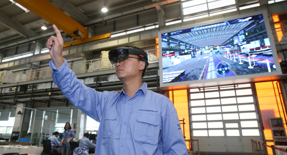 中國(guó)商飛公司總裝制造中心智慧數(shù)控車(chē)間主要承擔(dān)飛機(jī)零部件的研制、生產(chǎn)工作,其產(chǎn)品用于C919大型客機(jī)、ARJ21新支線(xiàn)客機(jī)。圖為工作人員在中國(guó)商飛公司總裝制造中心智慧數(shù)控車(chē)間使用AR眼鏡操控虛擬電子屏幕。新華社記者 丁汀 攝