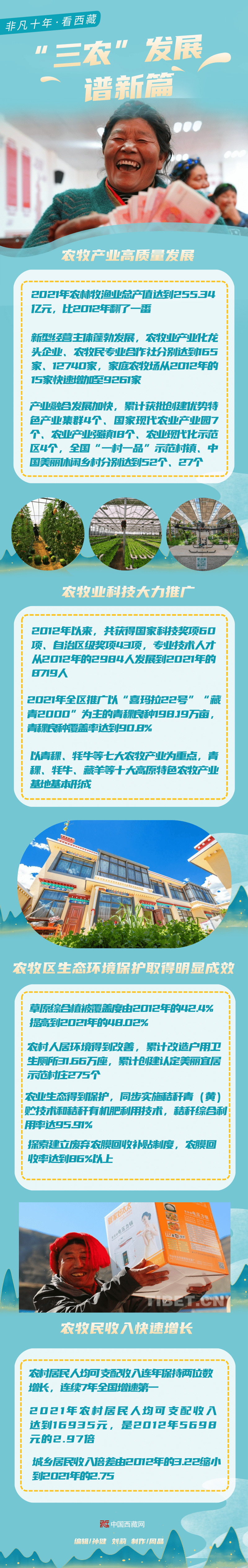 編者按:黨的十八大以來(lái),以習(xí)近平同志為核心的黨中央高度重視西藏工作,習(xí)近平總書記多次對(duì)西藏工作作出重要指示批示,召開中央西藏工作座談會(huì),親臨西藏視察指導(dǎo),為西藏工作指明了前進(jìn)方向、提供了根本遵循。十年來(lái),西藏自治區(qū)認(rèn)真貫徹落實(shí)習(xí)近平總書記關(guān)于西藏工作的重要指示,完整準(zhǔn)確全面貫徹新時(shí)代黨的治藏方略,堅(jiān)持以人民為中心的發(fā)展思想,努力推動(dòng)西藏長(zhǎng)治久安和高質(zhì)量發(fā)展,經(jīng)濟(jì)社會(huì)發(fā)展不斷取得新進(jìn)步。這是不平凡的十年,這是注定載入史冊(cè)的十年,讓我們回顧十年來(lái)西藏各項(xiàng)事業(yè)取得的全方位進(jìn)步、歷史性成就,以?shī)^進(jìn)新征程、建功新時(shí)代的決心與行動(dòng),踔厲奮發(fā)、篤行不怠,迎接黨的二十大勝利召開。(中國(guó)西藏網(wǎng)編輯/孫健 劉莉 制作/周晶)