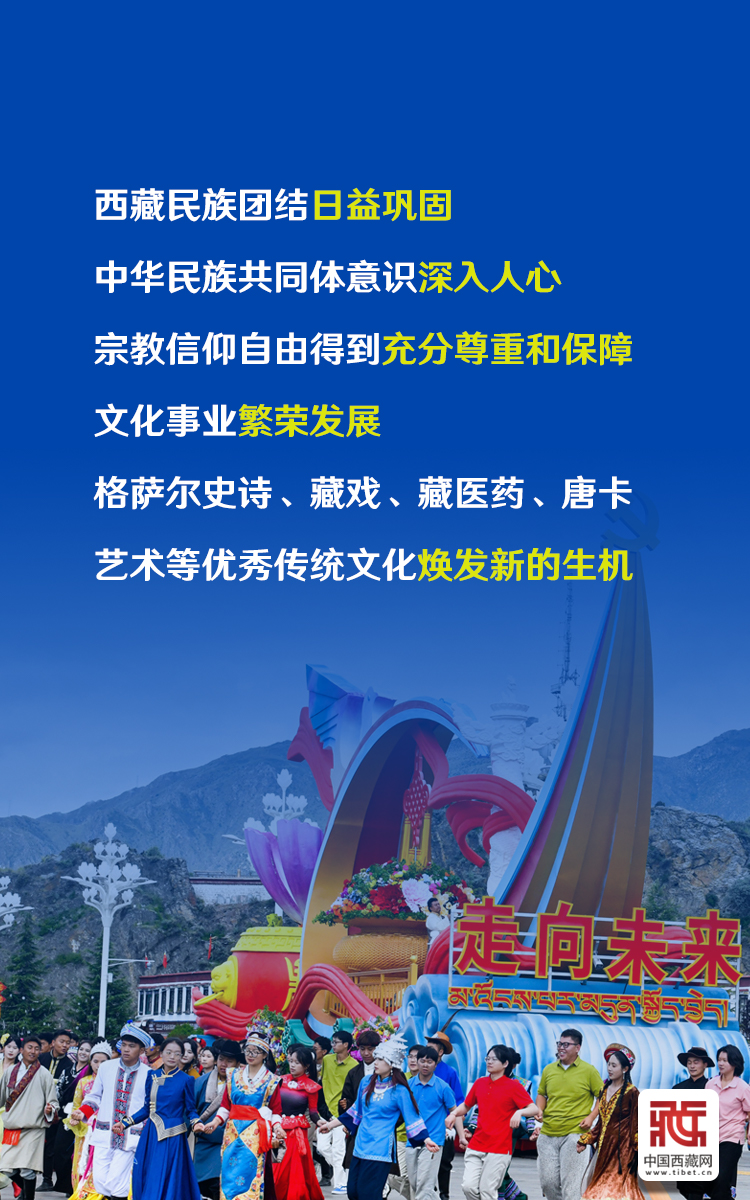 60年來,西藏經(jīng)濟社會全面發(fā)展,各族人民生活蒸蒸日上,生態(tài)文明建設成效顯著,民族團結(jié)日益鞏固,中華民族共同體意識深入人心,宗教信仰自由得到充分尊重和保障,文化事業(yè)繁榮發(fā)展。(中國西藏網(wǎng) 記者/王淑 馮重霖 邊子捷 趙振宇 德吉卓瑪 次旦拉姆 旦曲 賈華加 趙釗 姚浩然 劉莉 楊眉笑 海報制作/趙佳)