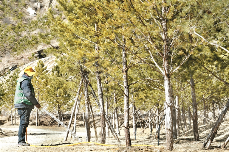 山上有了樹遠(yuǎn)遠(yuǎn)不夠,還要進(jìn)一步提高樹木的成活率,而樹木的成活率離不開后期的管護(hù)工作。因此,每年春天山體解凍后,就要保證每周給樹木澆一次水。另外,由于拉薩紫外線強(qiáng)度大、水分蒸發(fā)量高,有時還需要給樹木輸送營養(yǎng)液……因此,一批批踏著晨露、身披晚霞的樹木養(yǎng)護(hù)工人每天穿梭于山間,檢查樹木的生長情況,進(jìn)行補植補栽、灌溉等工作。拉薩市圣地園林公司相關(guān)負(fù)責(zé)人多布拉告訴記者:“我們從3月8日開始復(fù)工,作為園林工作人員,搶抓季節(jié)很重要,所以我們現(xiàn)在正在進(jìn)行補植補栽?!?/p>