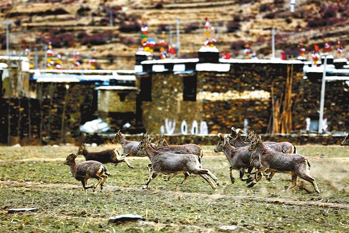 一小群巖羊正在山崖峭壁間不斷跳躍著,一群白唇鹿正在聚集休憩、喝水,野生動物的光臨,讓冬天里的瓊結(jié)瓊果河國家濕地公園顯得生機(jī)勃勃。 [詳細(xì)] -