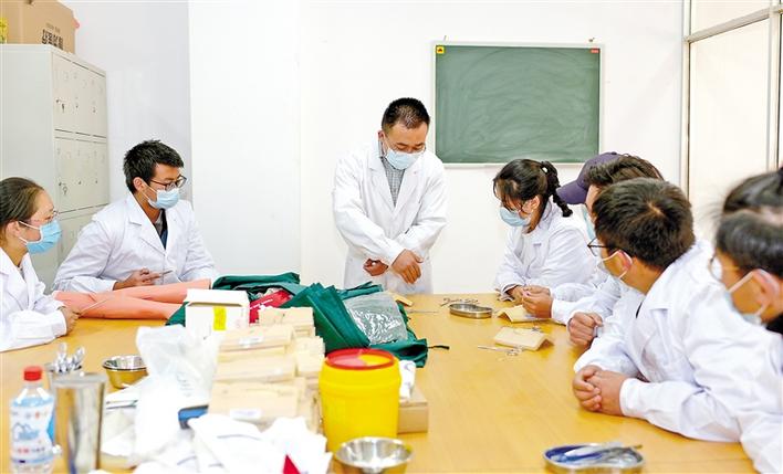 圖為西藏藏醫(yī)藥大學(xué)援藏教師遲德財(cái)(中)在給學(xué)生授課。