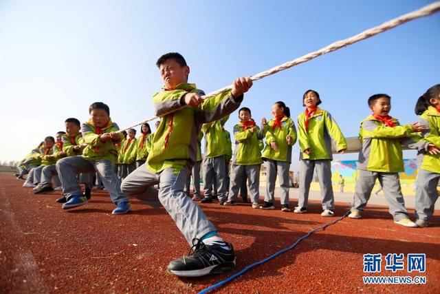 11月12日,學(xué)生在大課間參加拔河比賽。 位于山東省青島市即墨區(qū)的青島藍(lán)谷高新區(qū)東皋埠小學(xué)是一所鄉(xiāng)村學(xué)校,近年來,學(xué)校開展以乒乓球、籃球、跳繩等運動為主的大課間活動,讓孩子們在享受運動的同時愉悅身心,增強體質(zhì)。 新華社發(fā)(梁孝鵬攝)