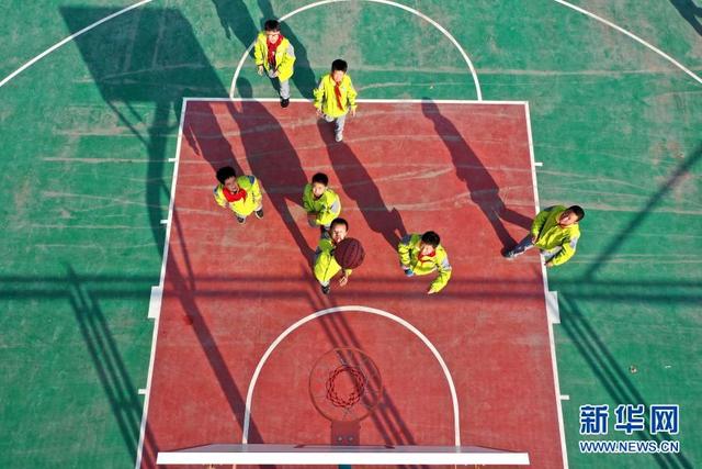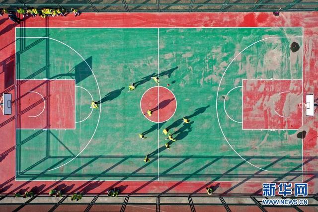 11月12日,學(xué)生在大課間打籃球(無人機照片)。 位于山東省青島市即墨區(qū)的青島藍(lán)谷高新區(qū)東皋埠小學(xué)是一所鄉(xiāng)村學(xué)校,近年來,學(xué)校開展以乒乓球、籃球、跳繩等運動為主的大課間活動,讓孩子們在享受運動的同時愉悅身心,增強體質(zhì)。 新華社發(fā)(梁孝鵬攝)