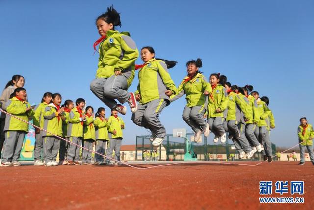 11月12日,學(xué)生在大課間參加集體跳繩。 位于山東省青島市即墨區(qū)的青島藍(lán)谷高新區(qū)東皋埠小學(xué)是一所鄉(xiāng)村學(xué)校,近年來,學(xué)校開展以乒乓球、籃球、跳繩等運動為主的大課間活動,讓孩子們在享受運動的同時愉悅身心,增強體質(zhì)。 新華社發(fā)(梁孝鵬攝)
