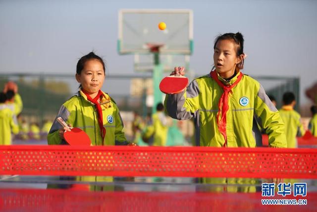 11月12日,學(xué)生在大課間打乒乓球。 位于山東省青島市即墨區(qū)的青島藍(lán)谷高新區(qū)東皋埠小學(xué)是一所鄉(xiāng)村學(xué)校,近年來,學(xué)校開展以乒乓球、籃球、跳繩等運動為主的大課間活動,讓孩子們在享受運動的同時愉悅身心,增強體質(zhì)。 新華社發(fā)(梁孝鵬攝)