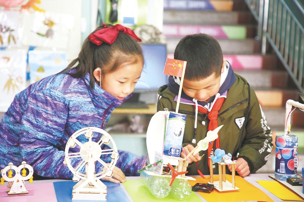 學(xué)生們進(jìn)行科技小制作。范生棟 攝
