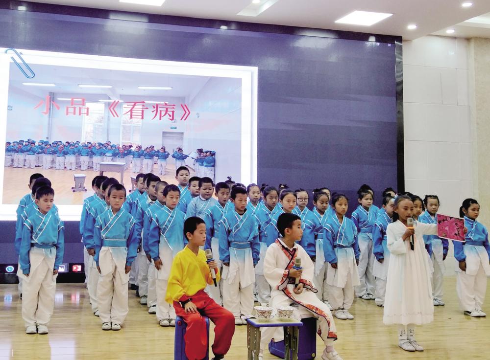 學生表演中醫(yī)藥文化主題小品。鄧金霞 攝
