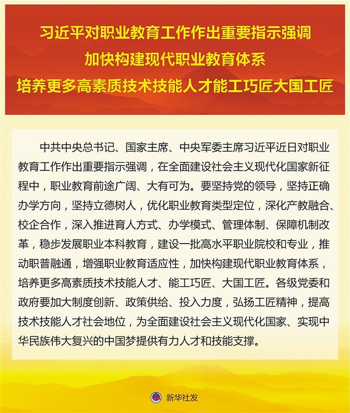 隨著各地深化產(chǎn)教融合、校企合作,深入推進(jìn)育人方式、辦學(xué)模式、管理體制、保障機(jī)制改革,更多高素質(zhì)技術(shù)技能人才、能工巧匠、大國(guó)工匠將從職業(yè)院校中走出來(lái)。