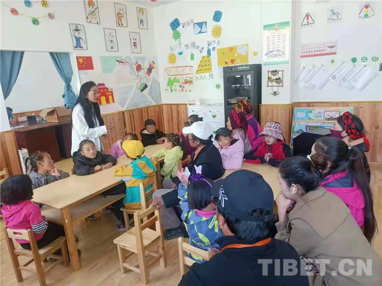 圖為俄達(dá)門巴村幼教點老師、學(xué)生及家長學(xué)習(xí)《家庭教育促進(jìn)法》