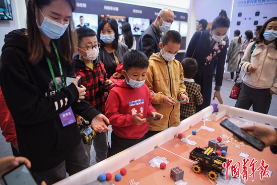 11月1日,山西太原,中國(guó)(太原)人工智能大會(huì)主題展覽現(xiàn)場(chǎng),一家主打人工智能和機(jī)器人的高科技創(chuàng)新公司研發(fā)的機(jī)器人競(jìng)技類游戲吸引了許多小朋友駐足體驗(yàn)。[詳細(xì)] -