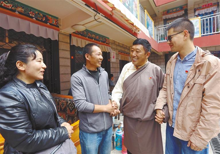 圖為社區(qū)黨員入戶(hù)走訪,了解群眾困難和訴求。記者 次旺 洛桑 攝