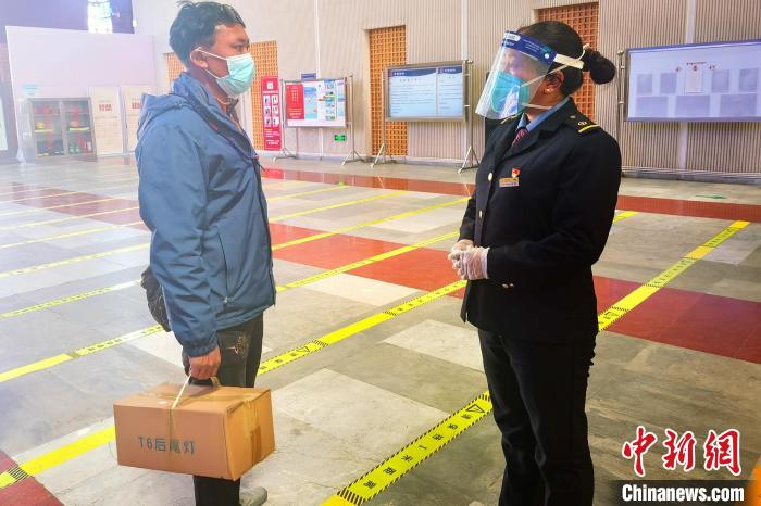 圖為羅布在林芝火車站引導(dǎo)乘客?!F青藏集團(tuán)有限公司 供圖