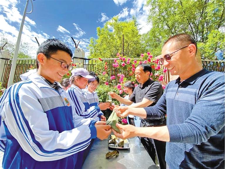 為弘揚(yáng)中華優(yōu)秀傳統(tǒng)文化,促進(jìn)漢藏文化交流,端午節(jié)期間,拉薩市第一中學(xué)教育援藏團(tuán)隊的老師為學(xué)生送上來自江蘇老家親人包的粽子。