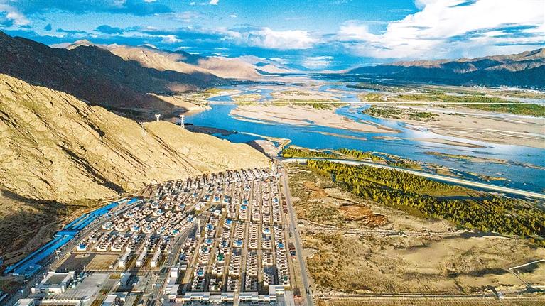 位于貢嘎縣的森布日搬遷安置點(2020年9月24日攝,無人機(jī)照片)。新華社記者 孫非 攝