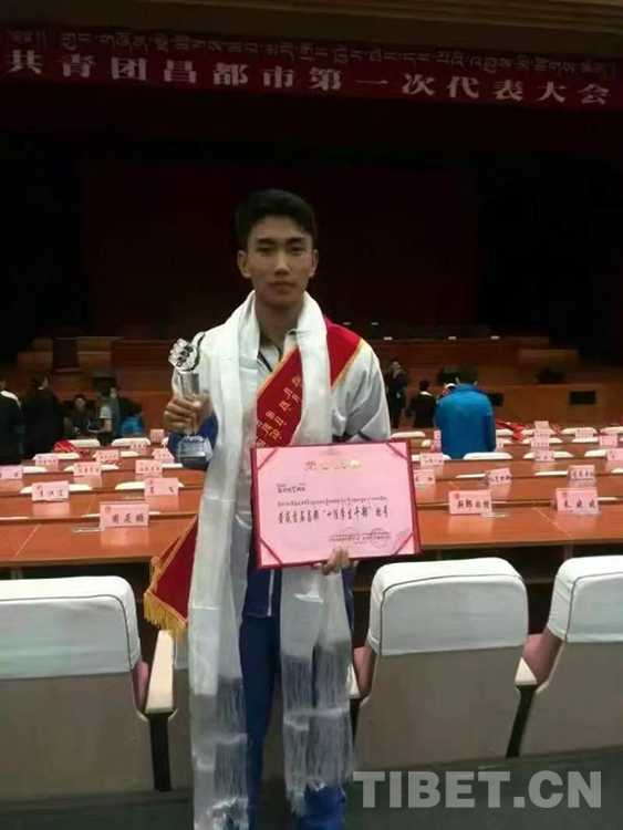 圖為斯郎格登榮獲首屆昌都“十佳學生干部”