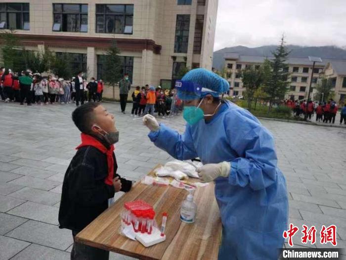 圖為林芝一小學(xué),開學(xué)當(dāng)天學(xué)生接受核酸檢測。林芝市教育局供圖