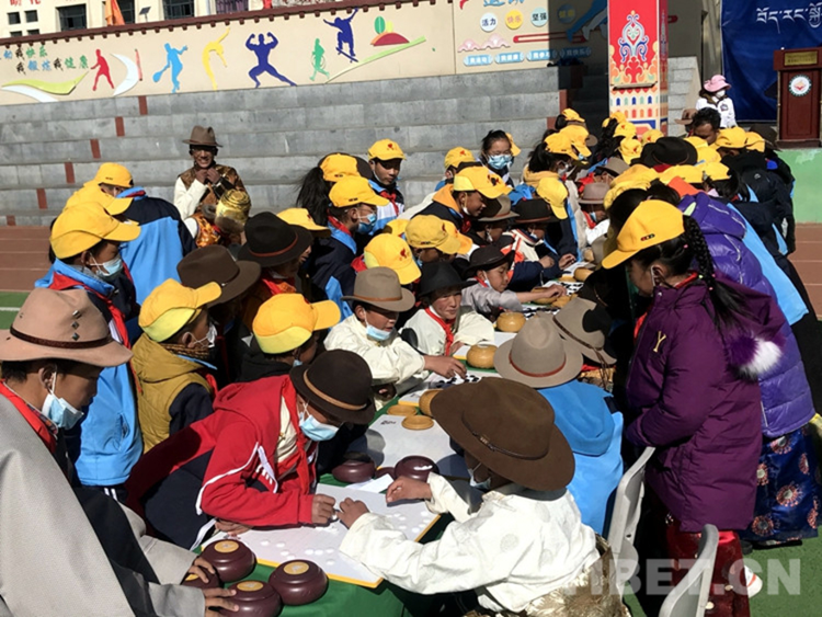 圖為2021年西藏自治區(qū)“體育項(xiàng)目進(jìn)校園”活動暨拉薩市堆龍德慶區(qū)古榮鎮(zhèn)中心小學(xué)藏棋比賽活動現(xiàn)場 攝影:次旦拉姆