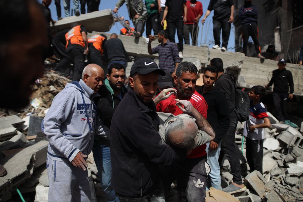 3月31日,在加沙地帶中部邁加齊難民營,人們在以軍空襲后開展救援。新華社發(fā)