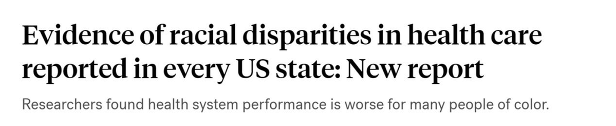 研究人員發(fā)現(xiàn),與美國白人相比,醫(yī)療系統(tǒng)對(duì)于許多有色人種來說要糟糕許多。并且,只有6個(gè)州的醫(yī)療系統(tǒng)在所有種族或族裔中的表現(xiàn)優(yōu)于平均水平。