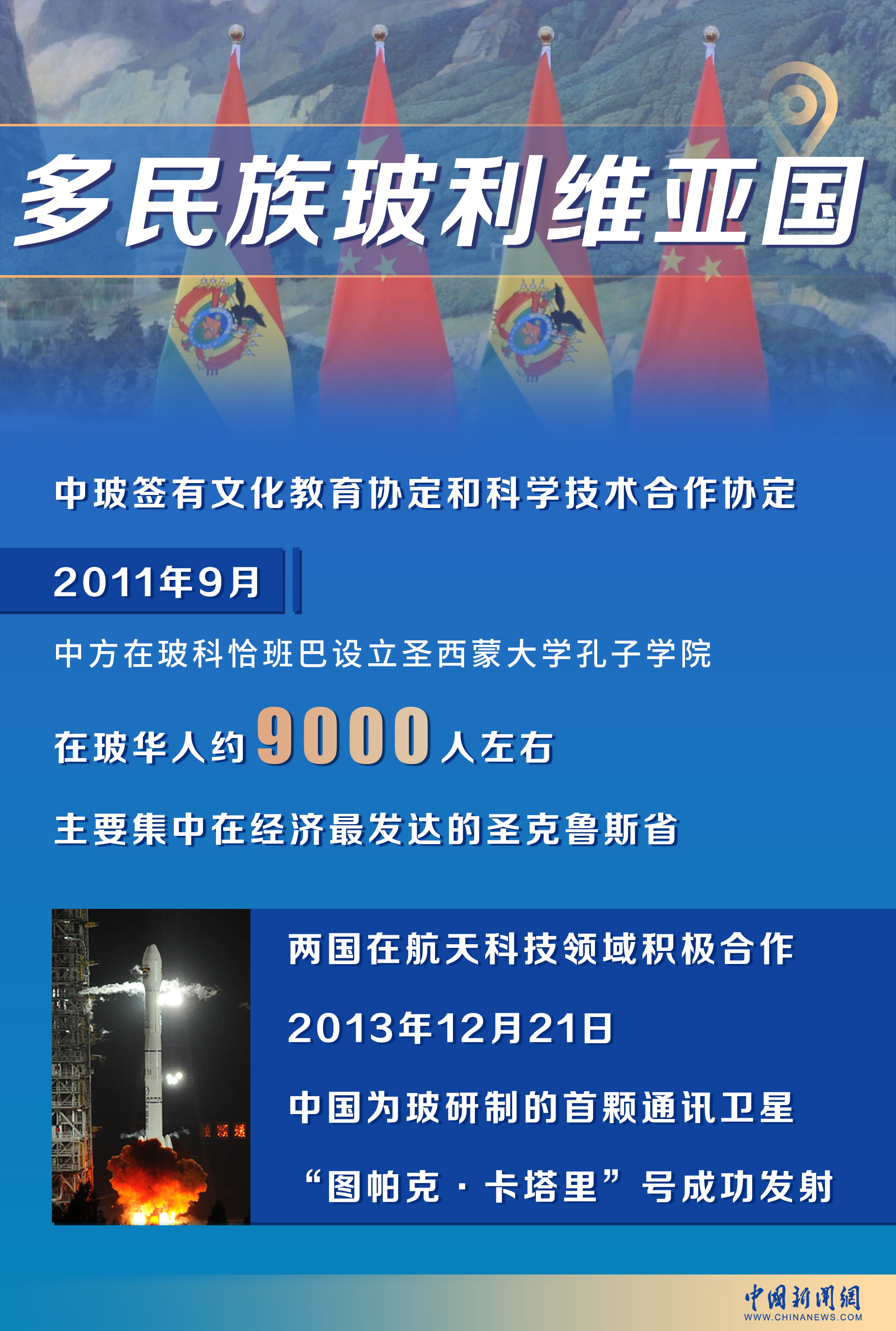 中玻兩國(guó)在航天科技領(lǐng)域的合作尤為突出。2013年12月21日,中國(guó)為玻利維亞研制的首顆通訊衛(wèi)星“圖帕克·卡塔里”號(hào)成功發(fā)射,這也是兩國(guó)科技合作的重要成果。